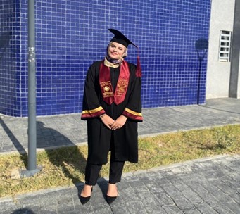 حاصلة على شهادة الماستر في القانون الخاص “ماستر القانون المدني والأعمال”، بجامعة عبد المالك السعدي، كلية العلوم القانونية والاقتصادية والاجتماعية بطنجة.
