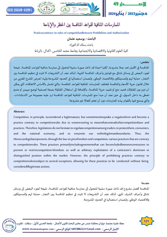 الممارسات المنافية لقواعد المنافسة بين الحظر والإباحة – الباحث : بوسعيد عثمان