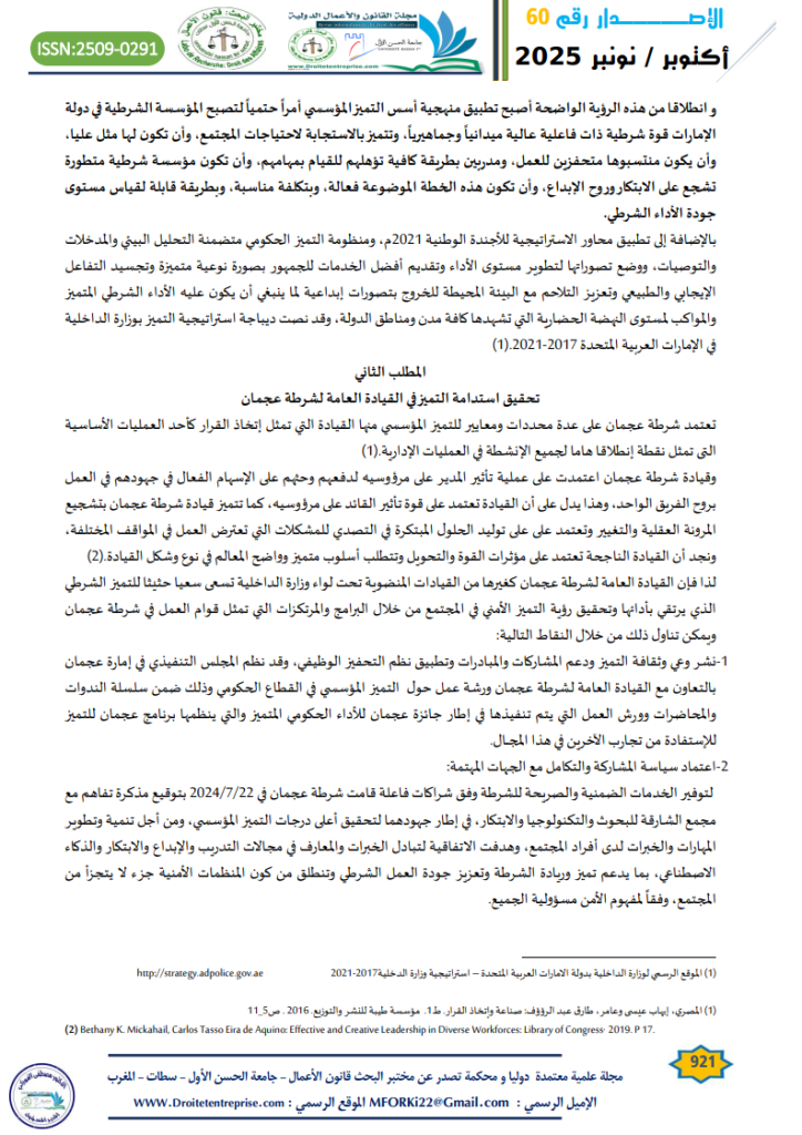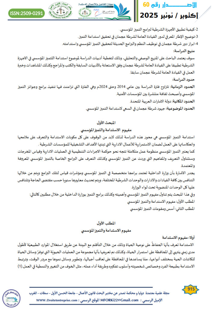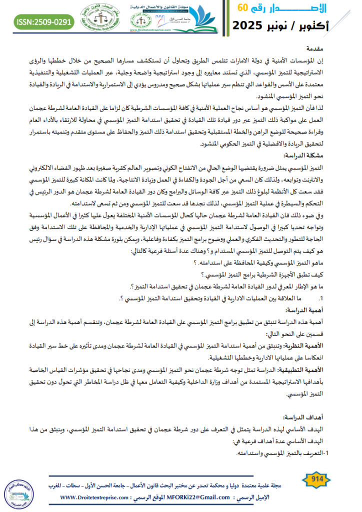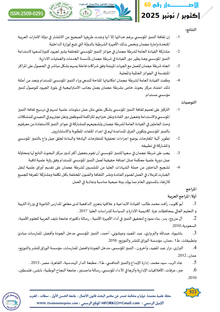 استدامة التميز المؤسسي في الأجهزة الشرطية تطبيقا على القيادة العامة لشرطة عجمان