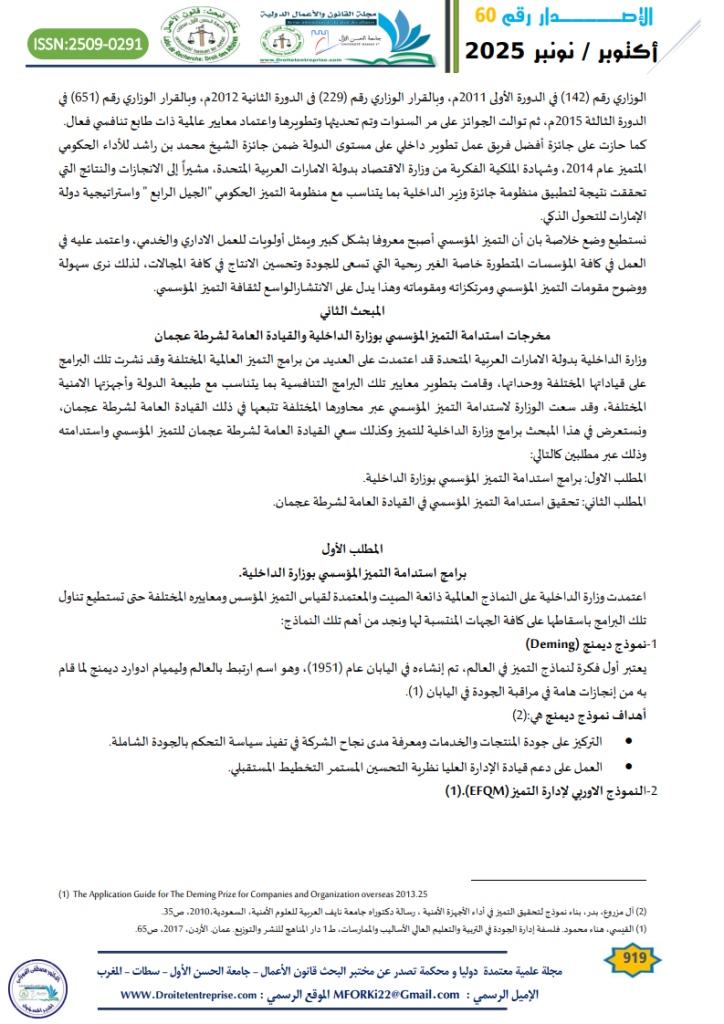 - كيفية تطبيق الأجهزة الشرطية لبرامج التميز المؤسسي.