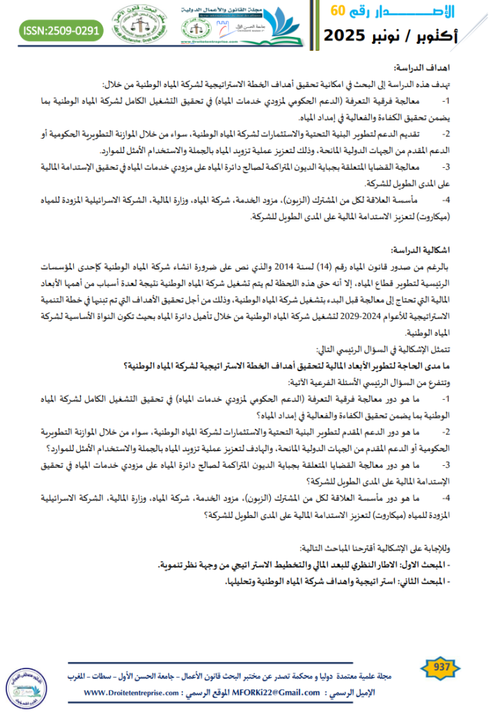 البعد المالي ودوره في تحقيق أهداف خطة التنمية الإستراتيجية لشركة المياه الوطنية