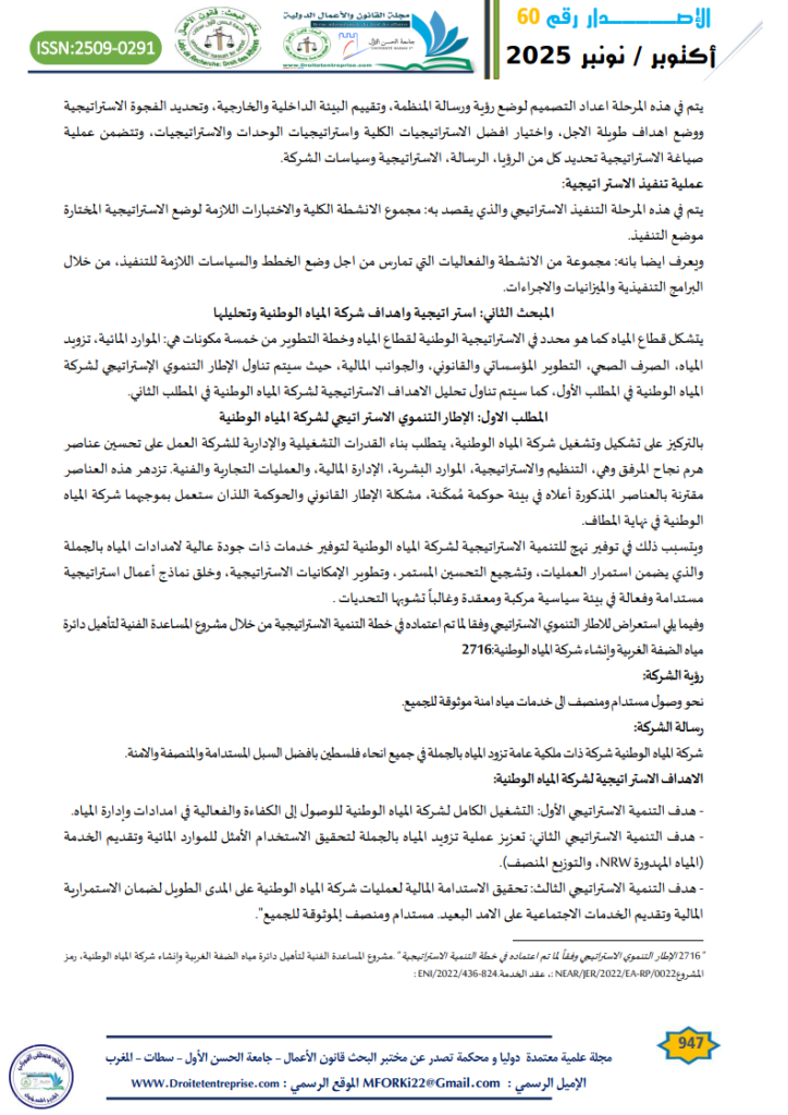 – المبحث الثاني: استراتيجية واهداف شركة المياه الوطنية وتحليلها.