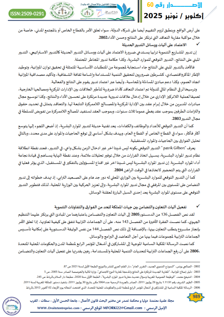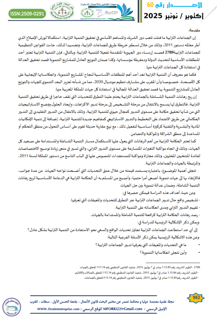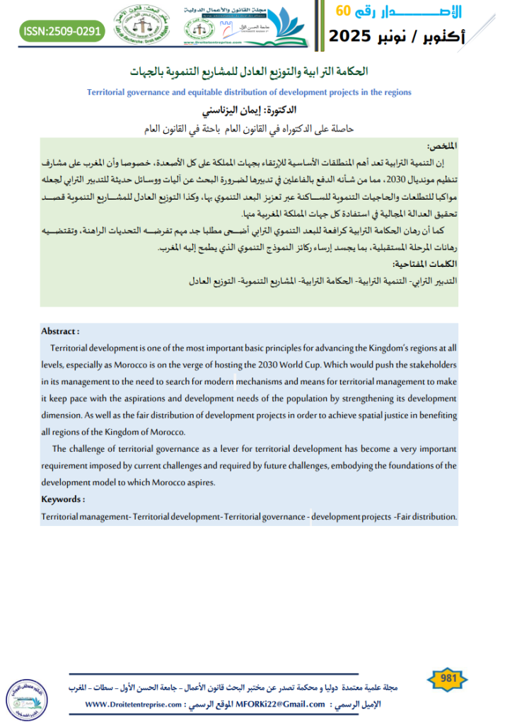 The challenge of territorial governance as a lever for territorial development has become a very important requirement imposed by current challenges and required by future challenges, embodying the foundations of the development model to which Morocco aspires.