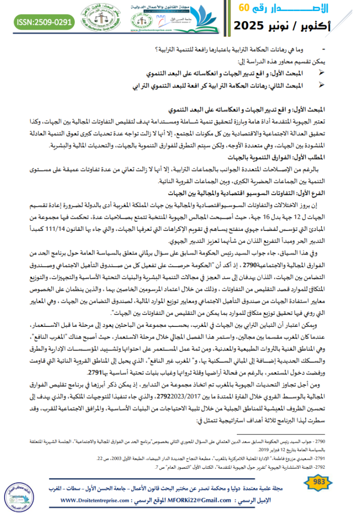 التدبير الترابي- التنمية الترابية- الحكامة الترابية- المشاريع التنموية- التوزيع العادل