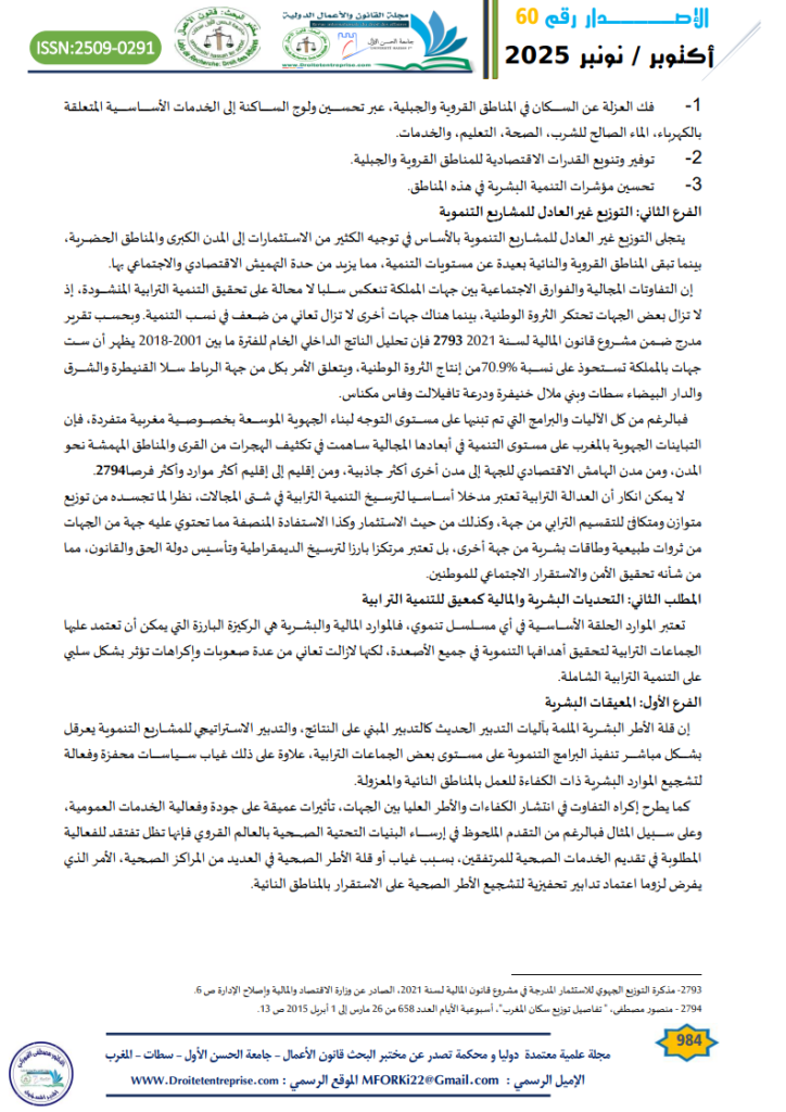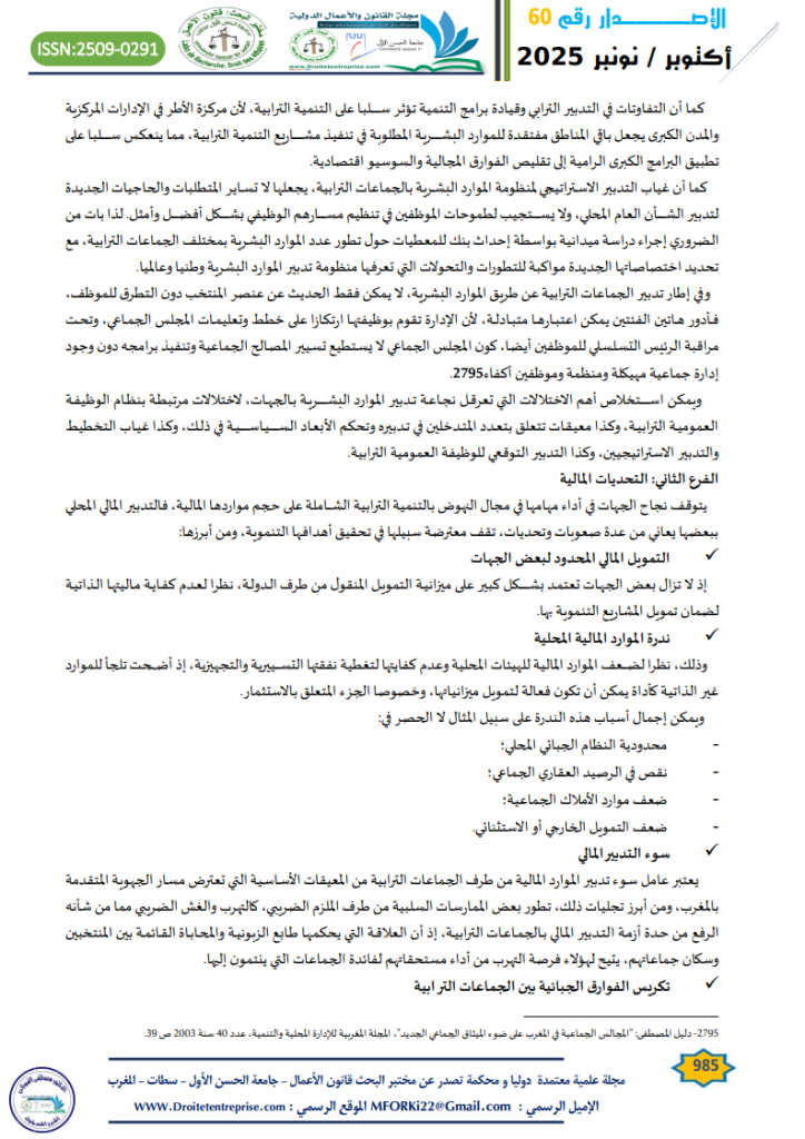 المطلب الثاني: التحديات البشرية والمالية كمعيق للتنمية الترابية