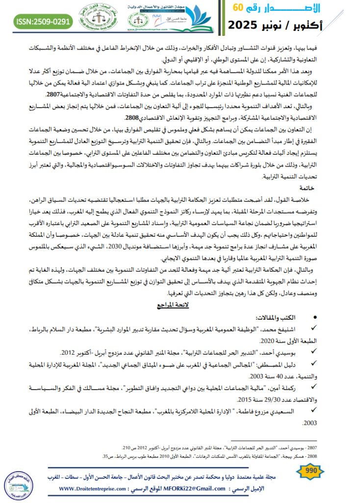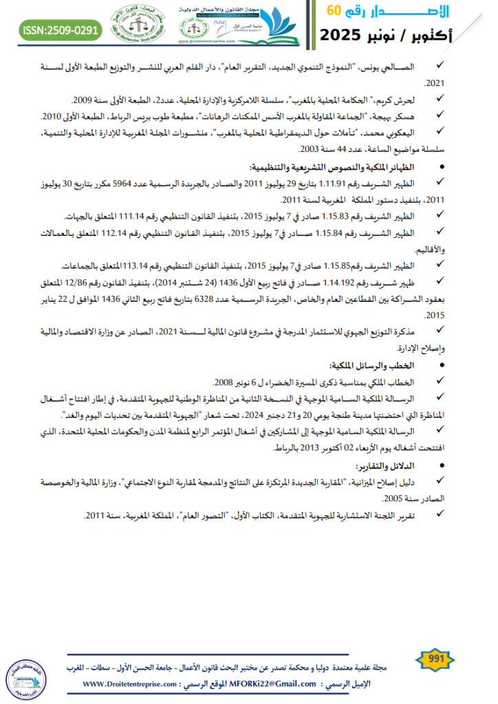 - – ركملة أمين، ”مالية الجماعات المحلية بين دواعي التجديد وافاق التطوير”، مجلة مسالك في الفكر والسياسة والاقتصاد عدد 30/29 سنة 2015 ص 87. ↑