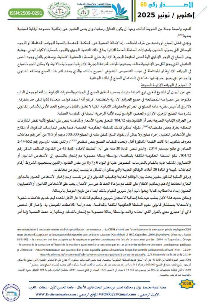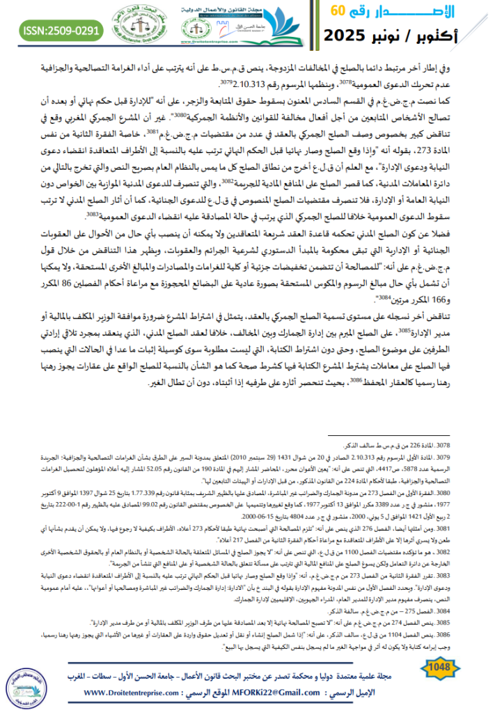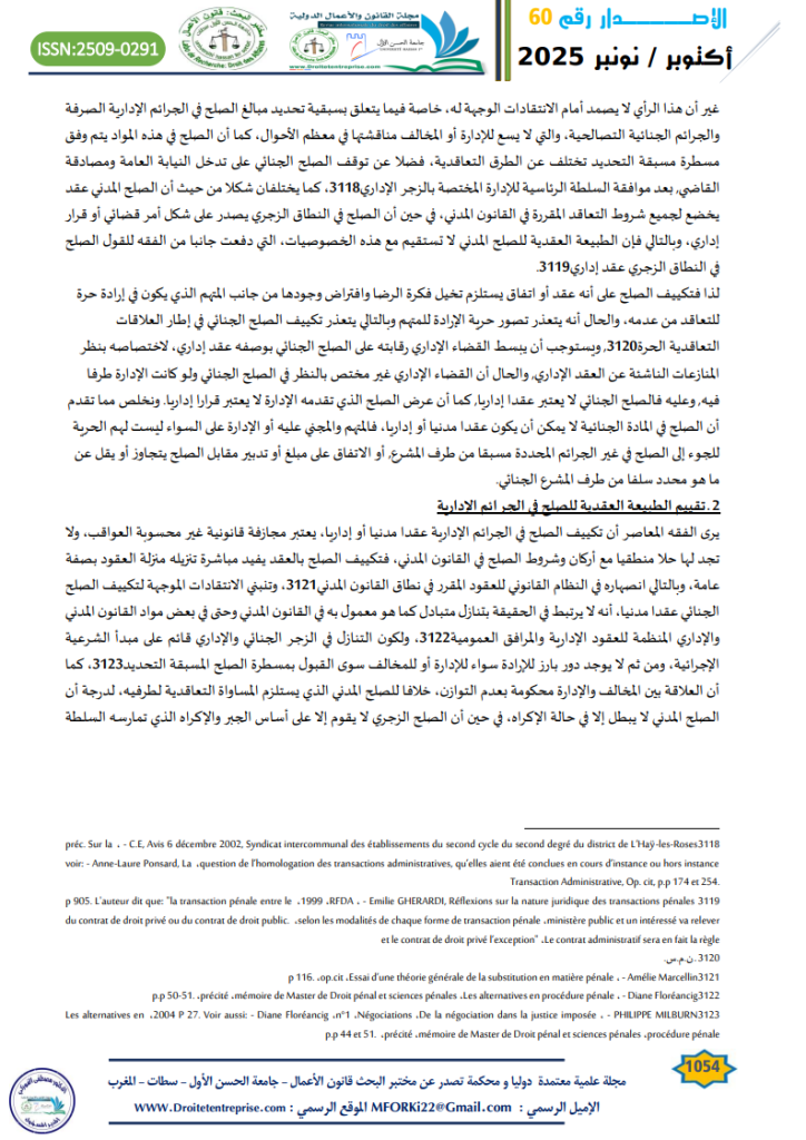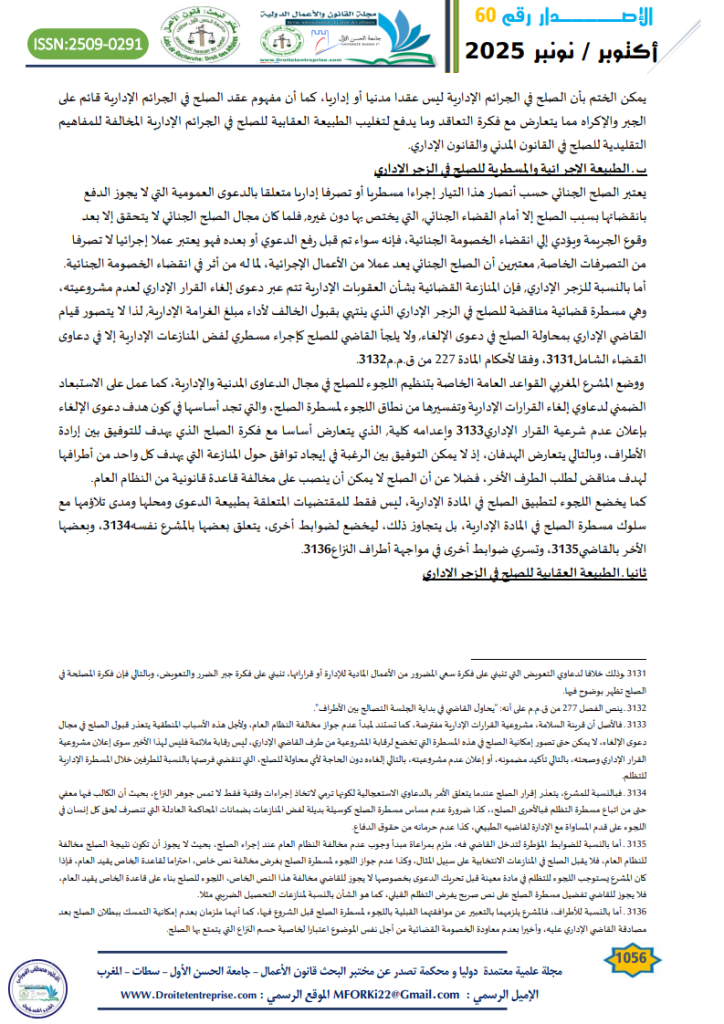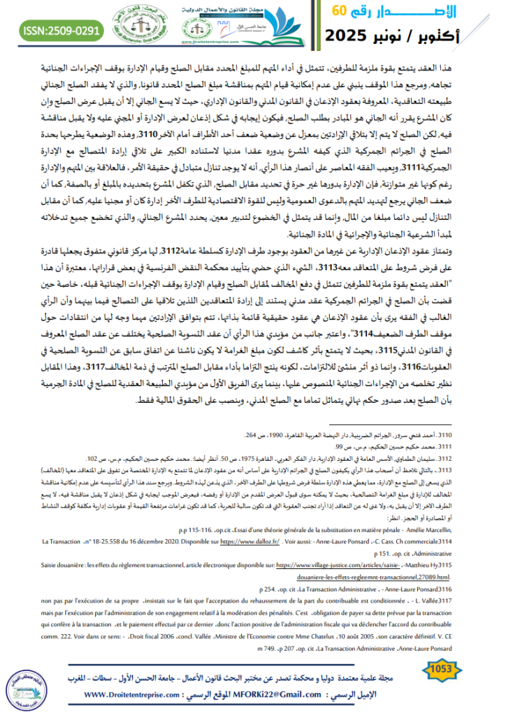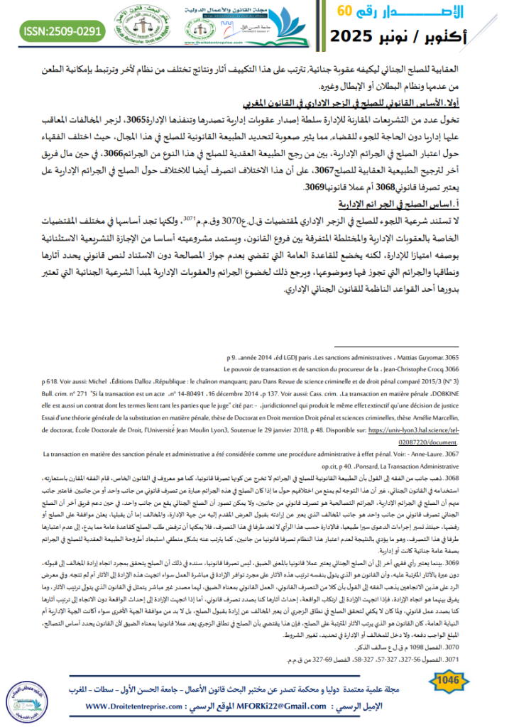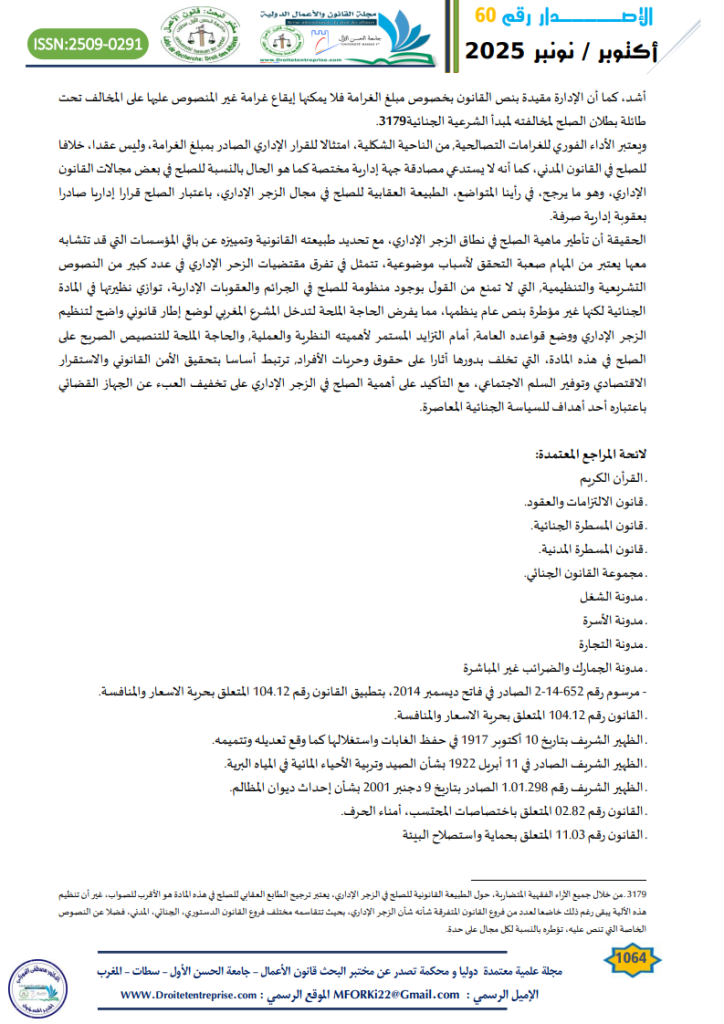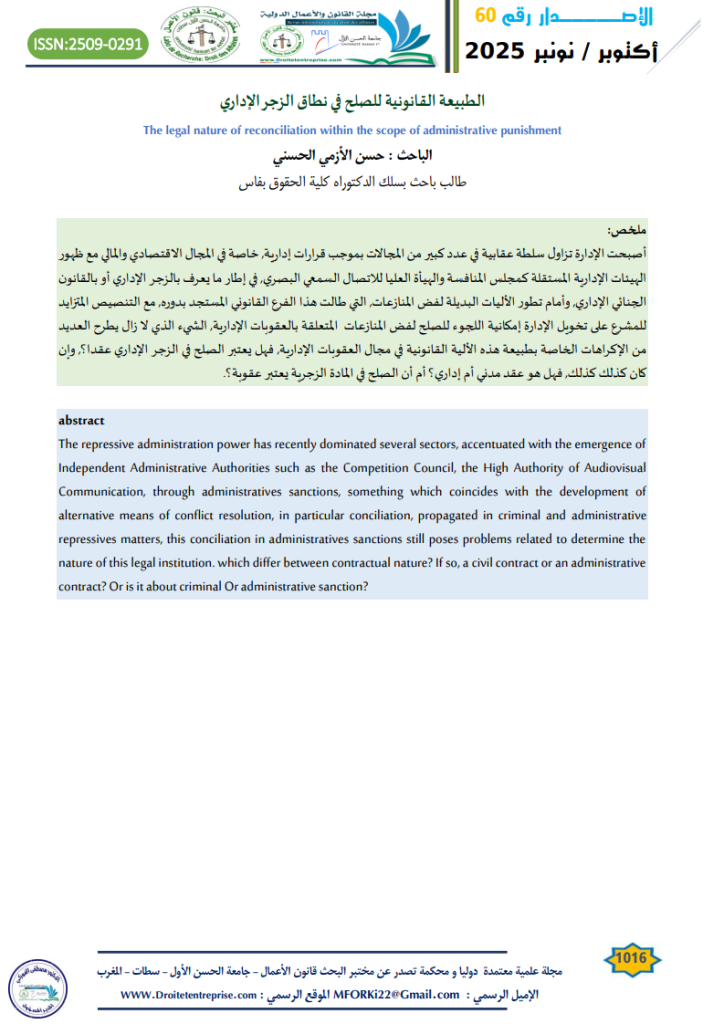 الطبيعة القانونية للصلح في نطاق الزجر الإداري – الباحث : حسن الأزمي الحسني