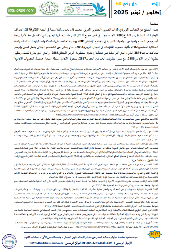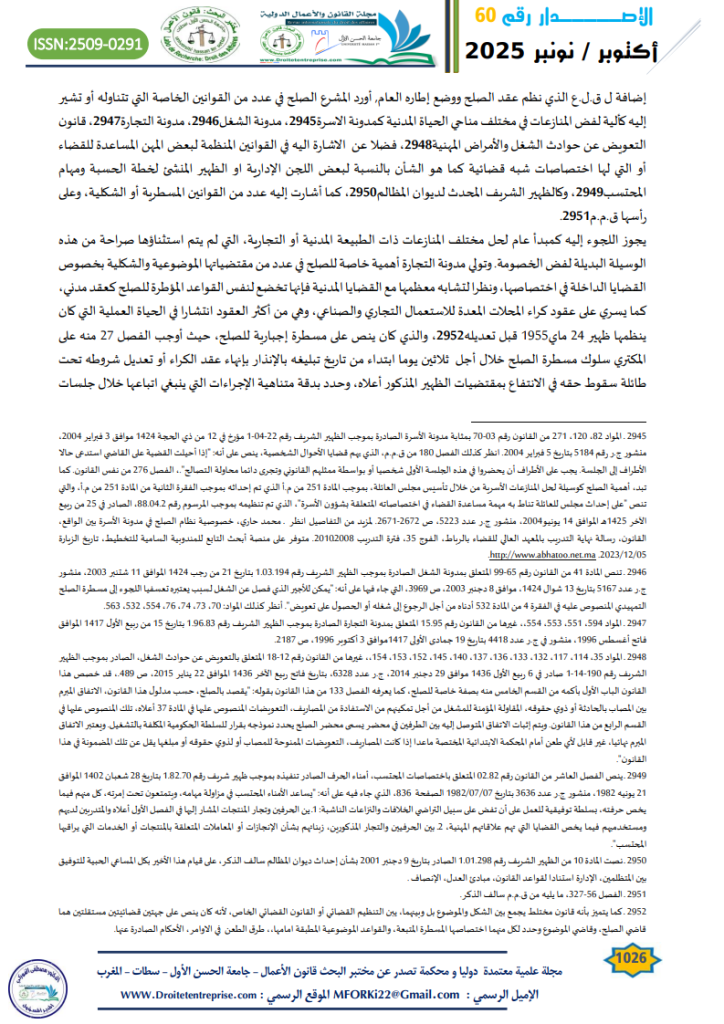 هذا البحث منشور في مجلة القانون والأعمال الدولية الإصدار رقم 60 الخاص بشهر أكتوبر/ نونبر 2025