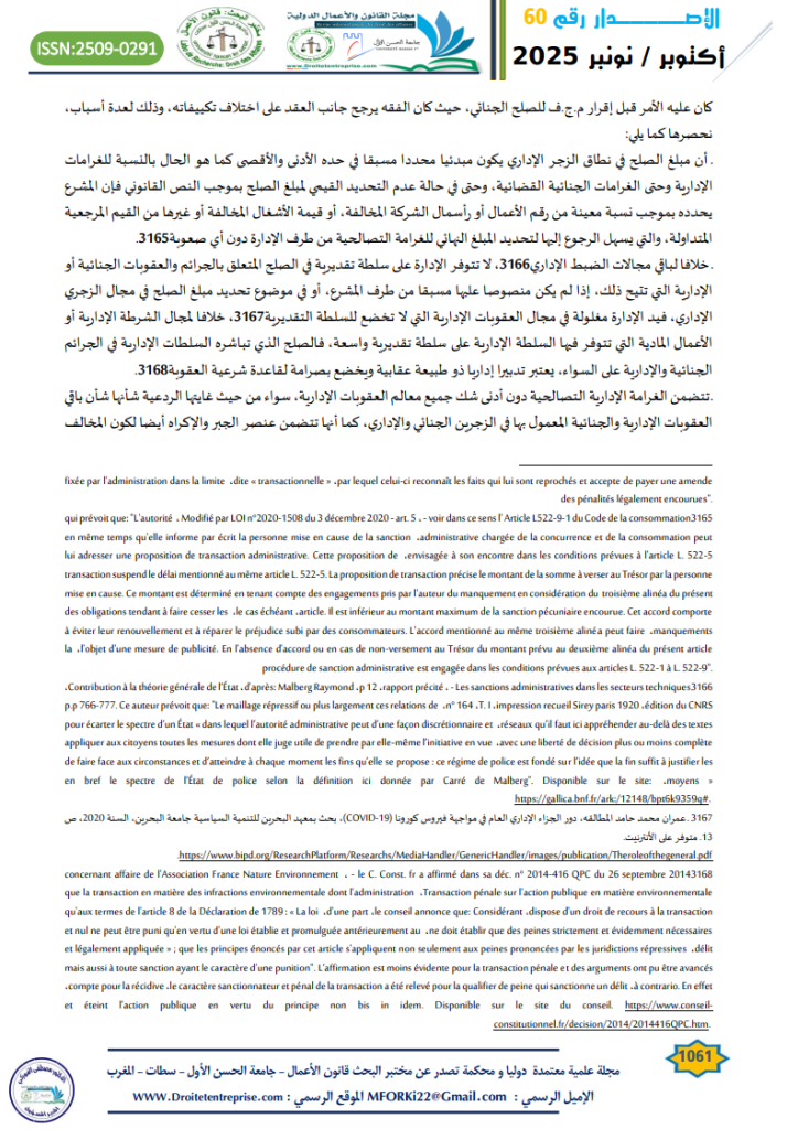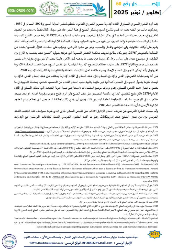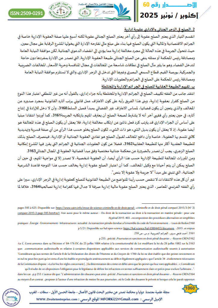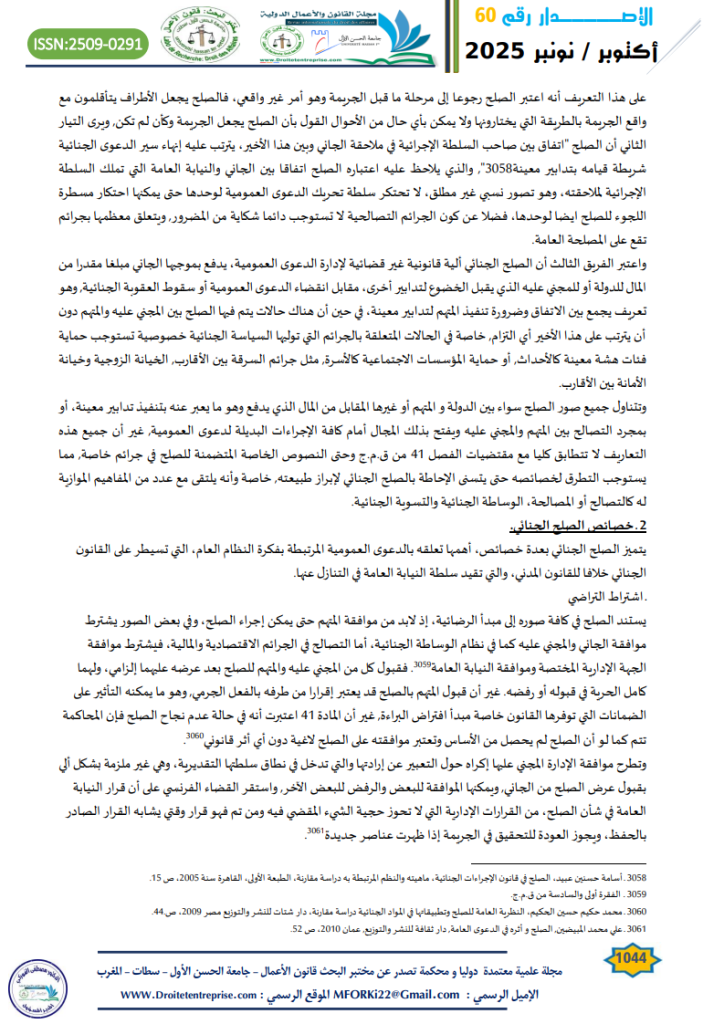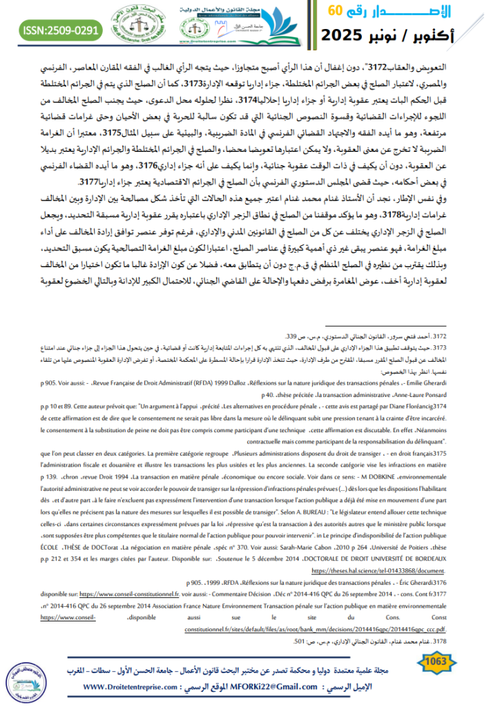 274. ـ لكحل منير، ماهية الصلح الجنائي، تمييزه عن الصلح الإداري، المدني، مجلة الحقوق، العلوم الإنسانية، كلية الحقوق، العلوم السياسية جامعة عباس لغرور خنشلة، العدد 8 الجزء 1، يوني، 2017، ص 181. متوفر على الأنترنيت، https://www.asjp.cerist.dz.