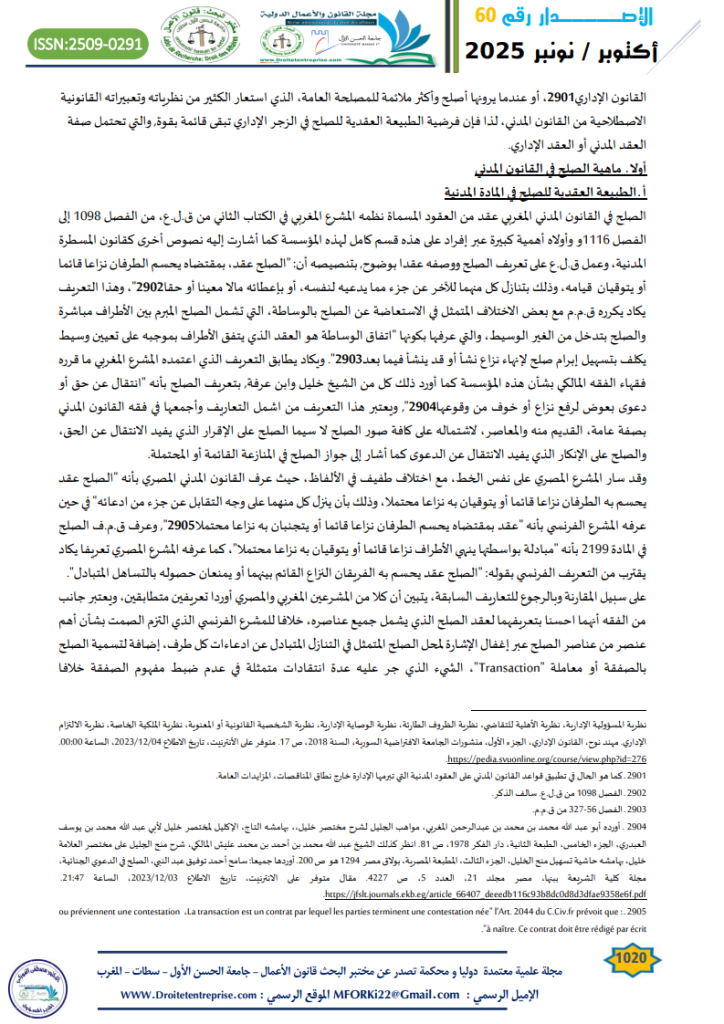 الفقرة الأولى: الأساس القانوني للصلح في القانون المدني والإداري
