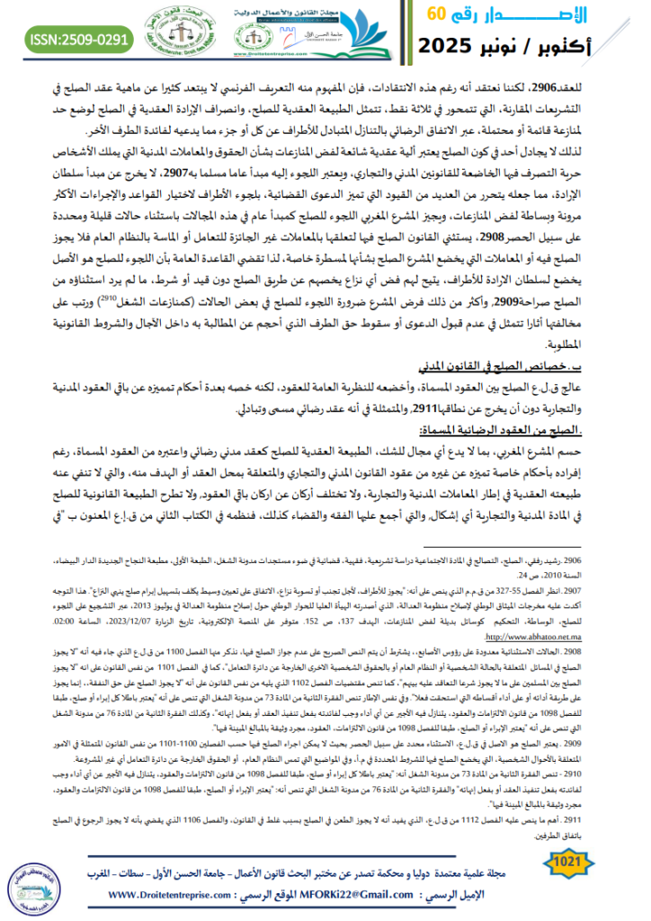 أ ـ الطبيعة العقدية للصلح في المادة المدنية