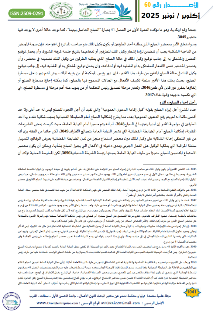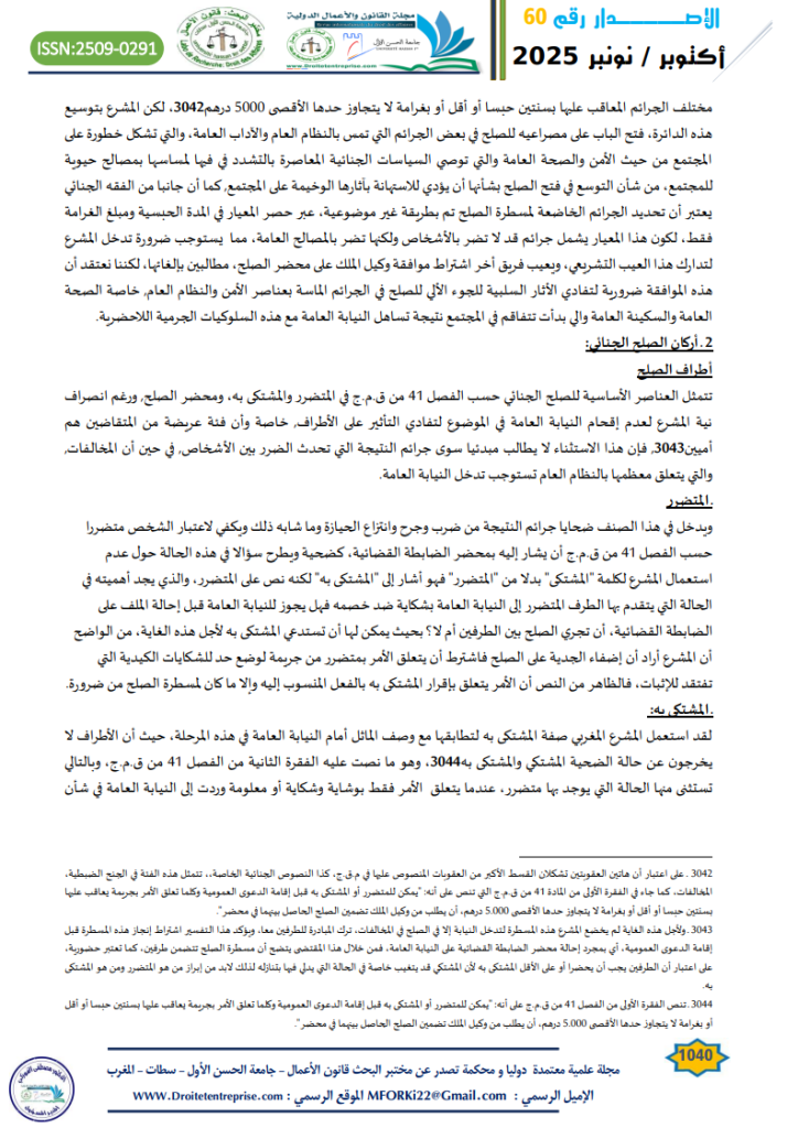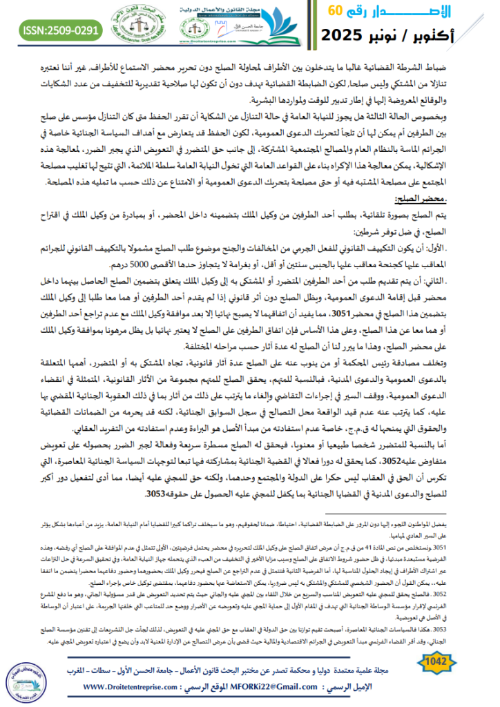 الفقرة الأولى الإطار القانوني للصلح الجنائي في القانون المغربي