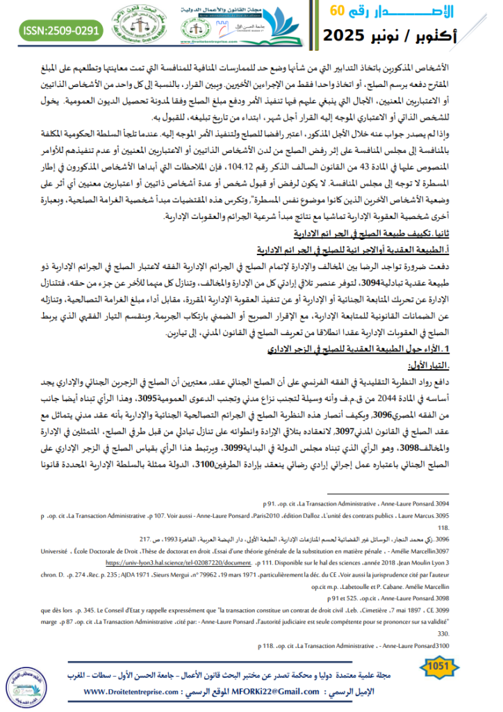265. – Emilie GHERARDI، Réflexions sur la nature juridique des transactions pénales، RFDA 1999، précité، p 905. Voir aussi: – Anne-Laure Ponsard، La Transaction Administrative، précité، p 40.