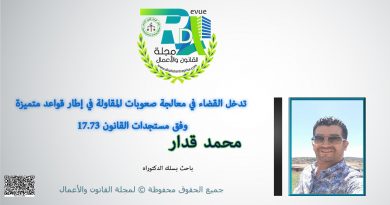 مجمد قدار طالب باحث بسلك الدكتوراه الموضوع :تدخل القضاء في معالجة صعوبات المقاولة في إطار قواعد متميزة وفق مستجدات القانون 17.73 مقدمة تعتبر مساطر معالجة صعوبات المقاولة ذات طبيعة اقتصادية ومالية واجتماعية إضافة إلى طبيعتها القانونية، وبهذا المعنى فهي لا تؤطر نزاعا تقليديا بين خصوم يدافعون عن مصالحهم وحقوقهم الشخصية، بل ترمي إلى إنقاذ المقاولة وإيجاد … تابع قراءة تدخل القضاء في معالجة صعوبات المقاولة في إطار قواعد متميزة وفق مستجدات القانون 17.73