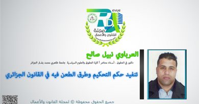 الدكتور العرباوي نبيل صالح أستاد محاضر أ كلية الحقوق والعلوم السياسية جامعة طاهري محمد بشار عنوان المقال: تنفيد حكم التحكيم وطرق الطعن فيه في القانون الجزائري الملخص: يعتبر التحكيم نظام تسوية المنازعات يخول بمقتضاه أطراف النزاع مهمة الفصل فيه إلى محكمين يختارونهم بمحض إرادتهم. فالمحكم يقوم بذات الوظيفة المنوط بالقاضي القيام بها وهي الفصل في … تابع قراءة تنفيد حكم التحكيم وطرق الطعن فيه في القانون الجزائري