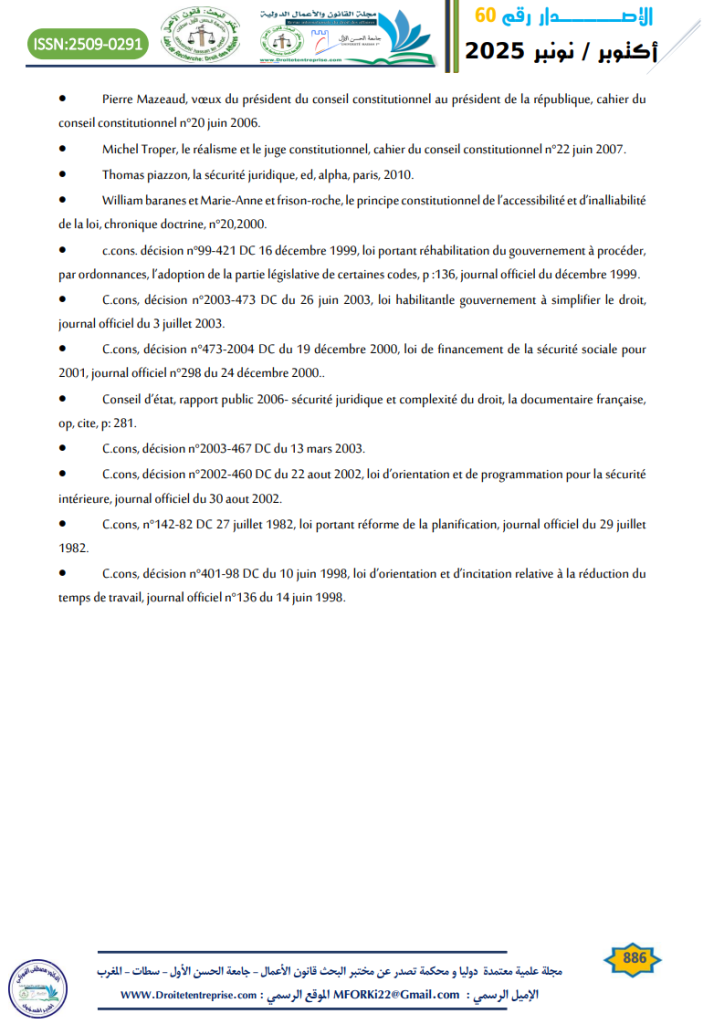 - – Alexander flückiger, le principe de clarté de la loi ou l’ambigüité d’un idéal, cahiers du conseil constitutionnel n°21 janvier, sur le lien :https://www.conseil-constitutionnel.fr/node/879/pdf 12/07/2025 على الساعة 18:04 ↑