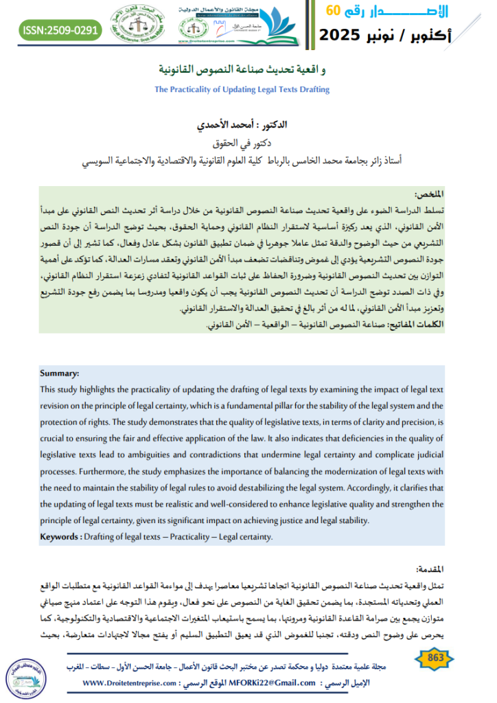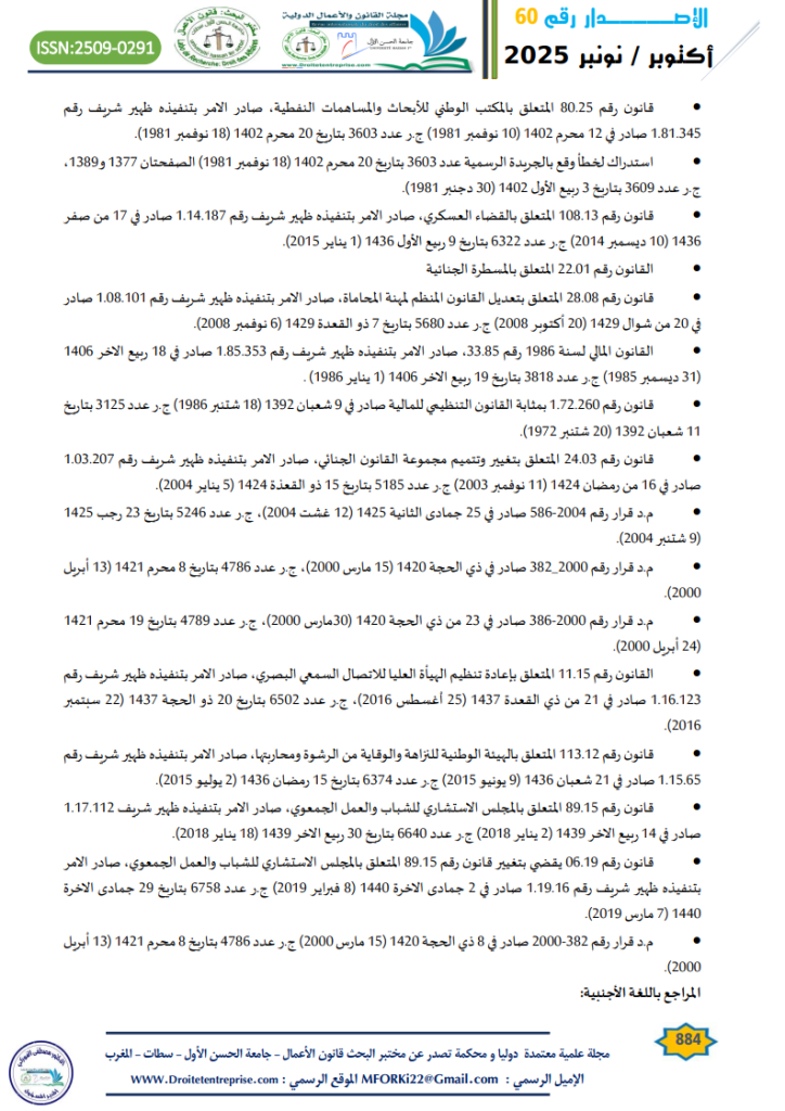 هذا البحث منشور في مجلة القانون والأعمال الدولية الإصدار رقم 60 الخاص بشهر أكتوبر/ نونبر 2025