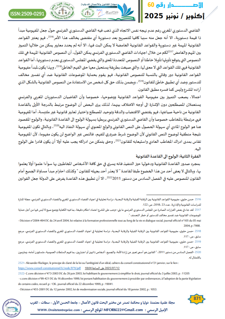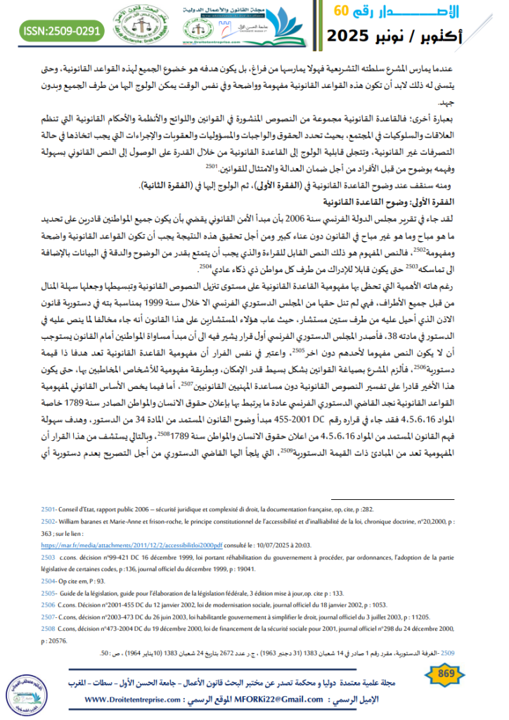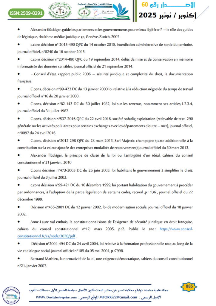 - – Alexander flückiger, le principe de clarté de la loi ou l’ambigüité d’un idéal, cahiers du conseil constitutionnel n°21 janvier, sur le lien :https://www.conseil-constitutionnel.fr/node/879/pdf 12/07/2025 على الساعة 18:04 ↑