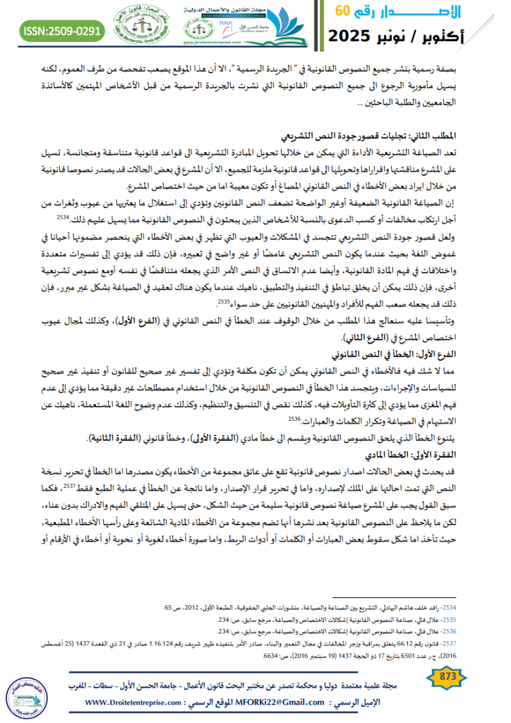 - – علال فالي، صناعة النصوص القانونية إشكالات الاختصاص والصياغة، مرجع سابق، ص: 234. ↑