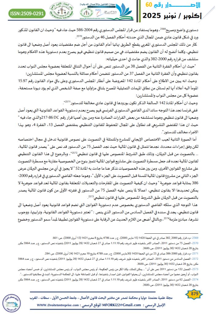 - – الفصل 75 من دستور 2011، الصادر الامر بتنفيذه ظهير شريف رقم 1.11.19 صادر في 27 شعبان 1432 (29 يوليوز 2011) بتنفيذه نص الدستور، ج.ر عدد 5964 مكرر بتاريخ 28 شعبان 1432 (30 يوليوز 2011)، ص،3600. ↑