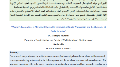 التعاونيات النسائية بالمغرب بين إكراهات هشاشة النوع ورهانات الإدماج الاجتماعي – الدكتور المصطفى قريشي – الباحثة : نهيلة اصلاح