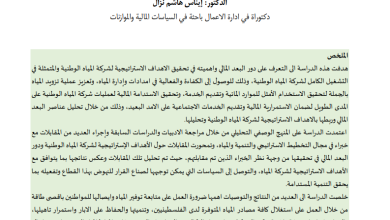 البعد المالي ودوره في تحقيق أهداف خطة التنمية الإستراتيجية لشركة المياه الوطنية – الباحث : فادي نوفل – الدكتور : عبد الرحيم فراشه – الدكتور: إيناس هاشم نزال