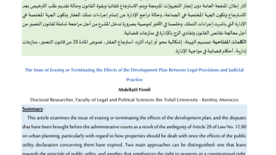 إشكالية محو أو إنهاء آثار تصميم التهيئة بين النص القانوني والعمل القضائي – الباحث : عبد اللطيف فرملي
